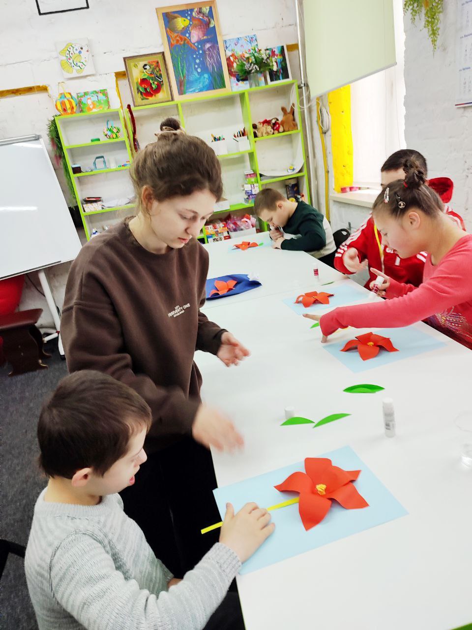 Під час заняття діти виготовляли паперову квіточку – подарунок для мами, а також створювали яскраві поробки з різнокольорових м’яких кульок, розвиваючи творчі здібності та фантазію.