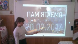 20.02.2018 року в нашому закладі освіти відбулися заходи, присвячені Дню Героїв Небесної Сотні, щорічне відзначення якого, прописано в Указі Президента України Петра Порошенка «Про увічнення подвигу учасників Революції гідності та увічнення пам’яті героїв Небесної сотні».Цей день є символом вшанування відваги, сили духу та стійкості громадян, які віддали своє життя під час Революції гідності (листопад 2013 – лютий 2014 р.), захищаючи ідеали демократії, відстоюючи права і свободи людини, європейське майбутнє України. Аби діти знали та поважали сучасних Героїв, для них цього дня було організовано перегляд документального фільму “Зима, що нас змінила”, проведено виховні години “Герої не вмирають” та “Слава відважним”. Учні 6-Б класу разом із вчителем історії Мочаліною А.О. підготували тематичні презентації, у яких старанно та з почуттям глибокої поваги розповідали про Героїв Небесної Сотні…На уроці-пам’яті “Гідність понад усе” учні 9-А класу переглядали тематичну хроніку та декламували вірш Оксани Максимишин-Корабель “Мамо, не плач.Я повернуся весною…” Жоден учень цього дня не залишився байдужим до пам’яті про тих, хто віддавши свій найцінніший скарб – життя, подарував надію на світле майбутнє новим поколінням незламного і непохитного українського народу…