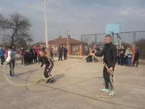 Для учнів 5-х-7-х класів було проведено спортивні естафети, де діти, розподілені на команди “Супутник” та “Ракета”, продемонстрували спритність, винахідливість та кмітливість. Більш вправними виявилися “Супутники”, що були швидшими за “Ракет” із загальним рахунком 12:8.